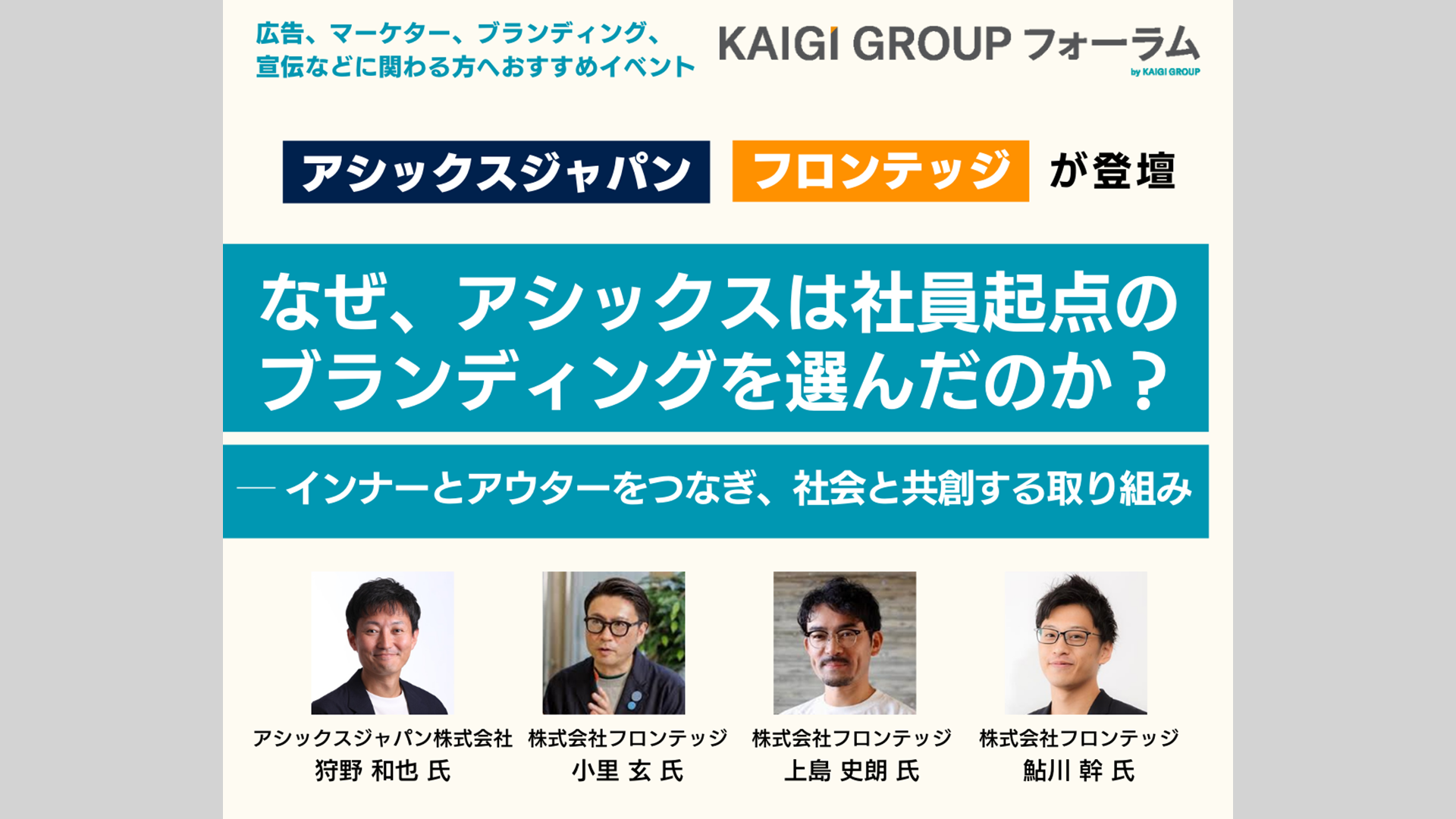 2026年2月17日(火)「KAIGI GROUP フォーラム」に登壇 | なぜアシックスは社員起点のブランディングを選んだのか? ーアシックス×フロンテッジが語る、インナーとアウターをつなぐ共創型ブランディングの実践ー