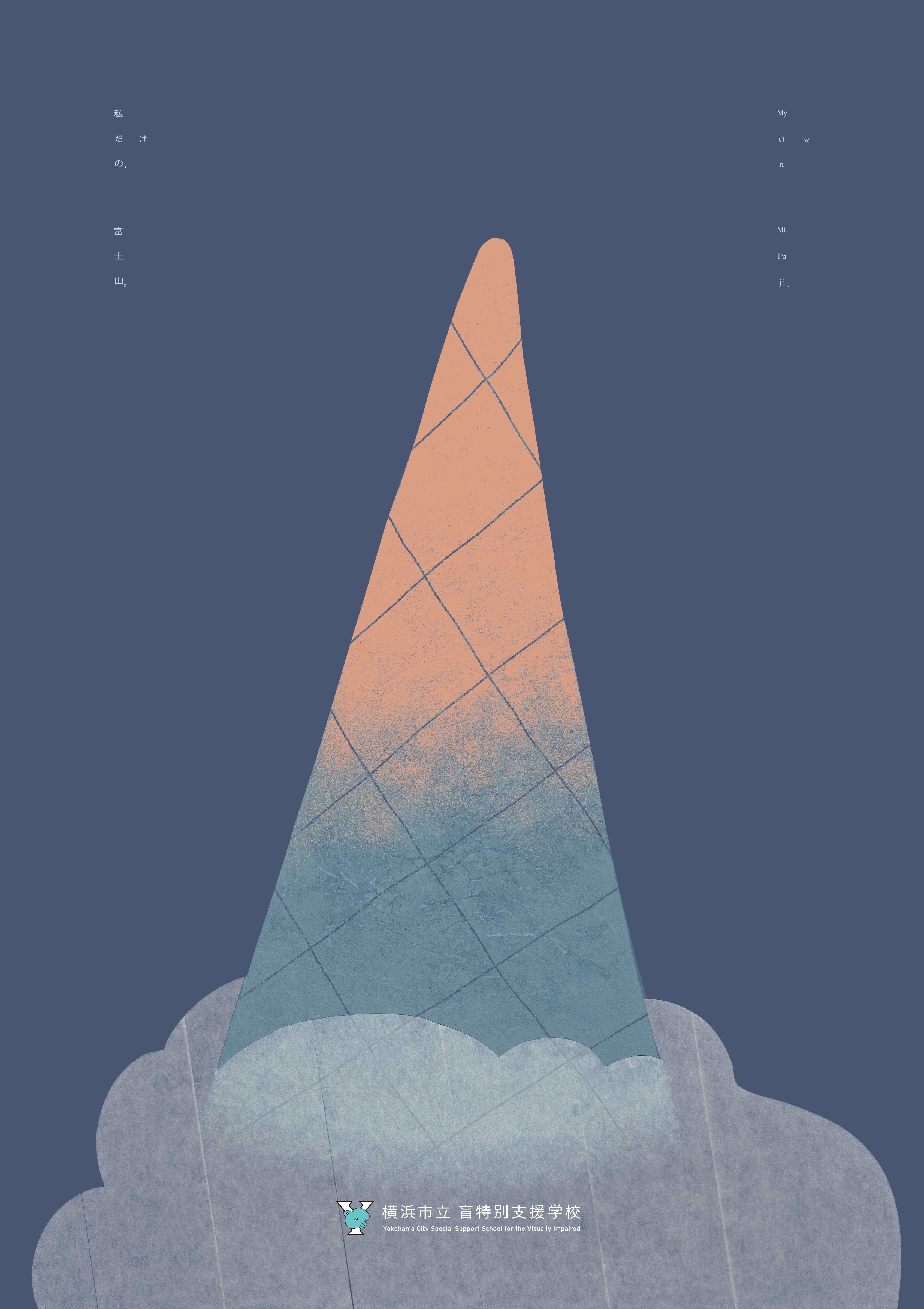 具体的には、「目が見えない」「見えにくい」生徒さんの「ものの見方」を表現するために、富士山、自由の女神、ピラミッド、地球、宇宙という5つのユニバーサルなモチーフを設定。生徒さんたちの中にあるイメージを言葉で表現してもらい、言葉を元に、実験的な創作活動をされているイラストレーター・四宮愛さんに、生徒さんたちの触覚的な感覚を表現できるマスキングテープやトレーシングペーパー、食品用ラップなどの素材を使って仕上げていただきました。