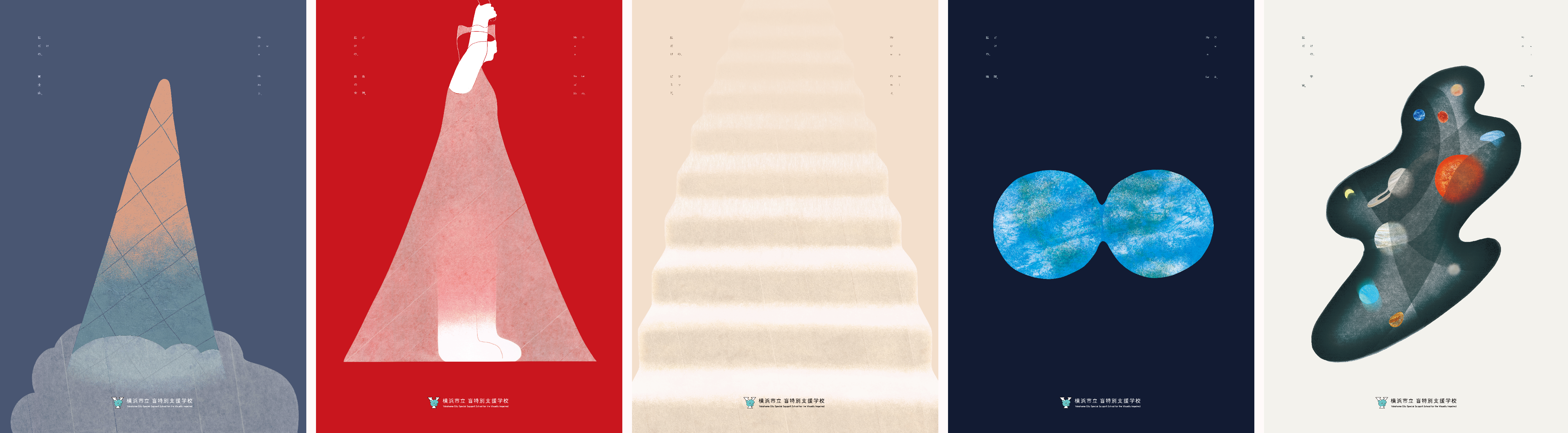 ポスターシリーズはエントランスをはじめとする校内に掲出。入学を検討される生徒さんや親御さんに加え、同校で開催された「第66回弱視教育研究全国大会」では全国から集まった教育関係者にも見ていただきました。このプロジェクトの制作プロセスとアウトプットで私たちがチャレンジしたのは、人間には一人一人違いがあり、世界の捉え方や「ものの見方」に唯一の「正解」はないということを表現することでした。これらのポスターを通じて、違いを単に受け入れるのではなく、それを心から「面白い」と言い合える社会についての対話が始まること、そして同校が実践している教育について理解が深まることを願っています。