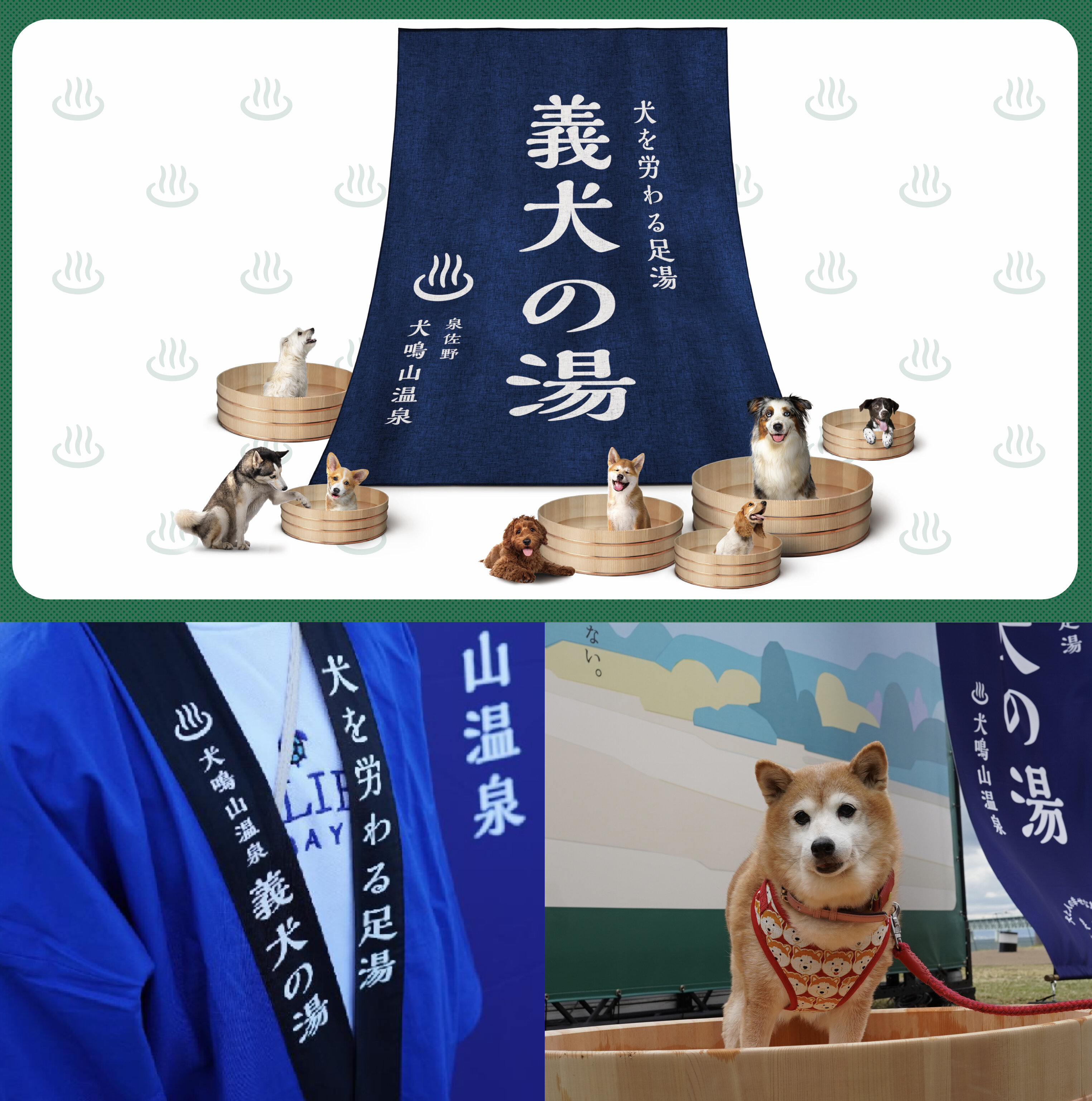 そこで注目したのが、「義犬伝説」が由来の犬鳴山温泉。「人々が心身を労るための温泉」を「飼い主が犬を労るための温泉」に変え、イベントを行いました。それが犬を労わる足湯「義犬の湯」です。